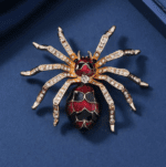 Donnez du charme à vos tenues avec cette magnifique Broche Araignée Rouge & Or